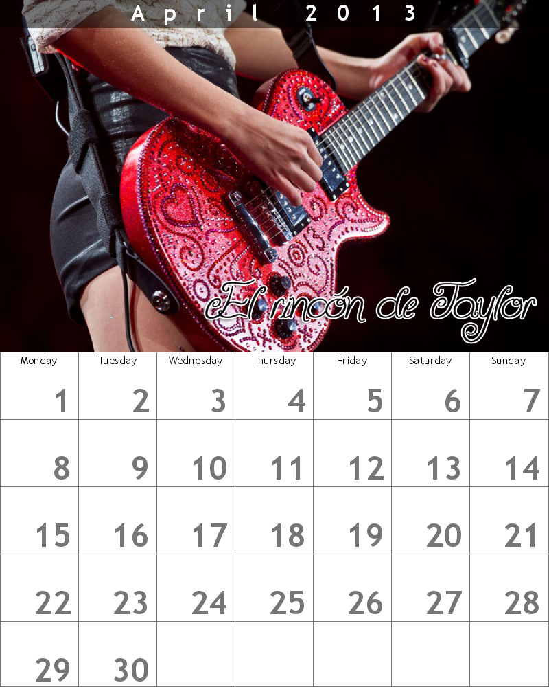 7 de abril: Los ACM Awards desde Las Vegas, Nevada. Taylor está nominada a Artista del Año, Vocalista Femenina del Año, Álbum del Año por RED (Artista), Álbum del Año por RED (Productor), Vídeo del Año por "We Are Never Ever Getting Back Together". Vota a Taylor en VoteACM.com