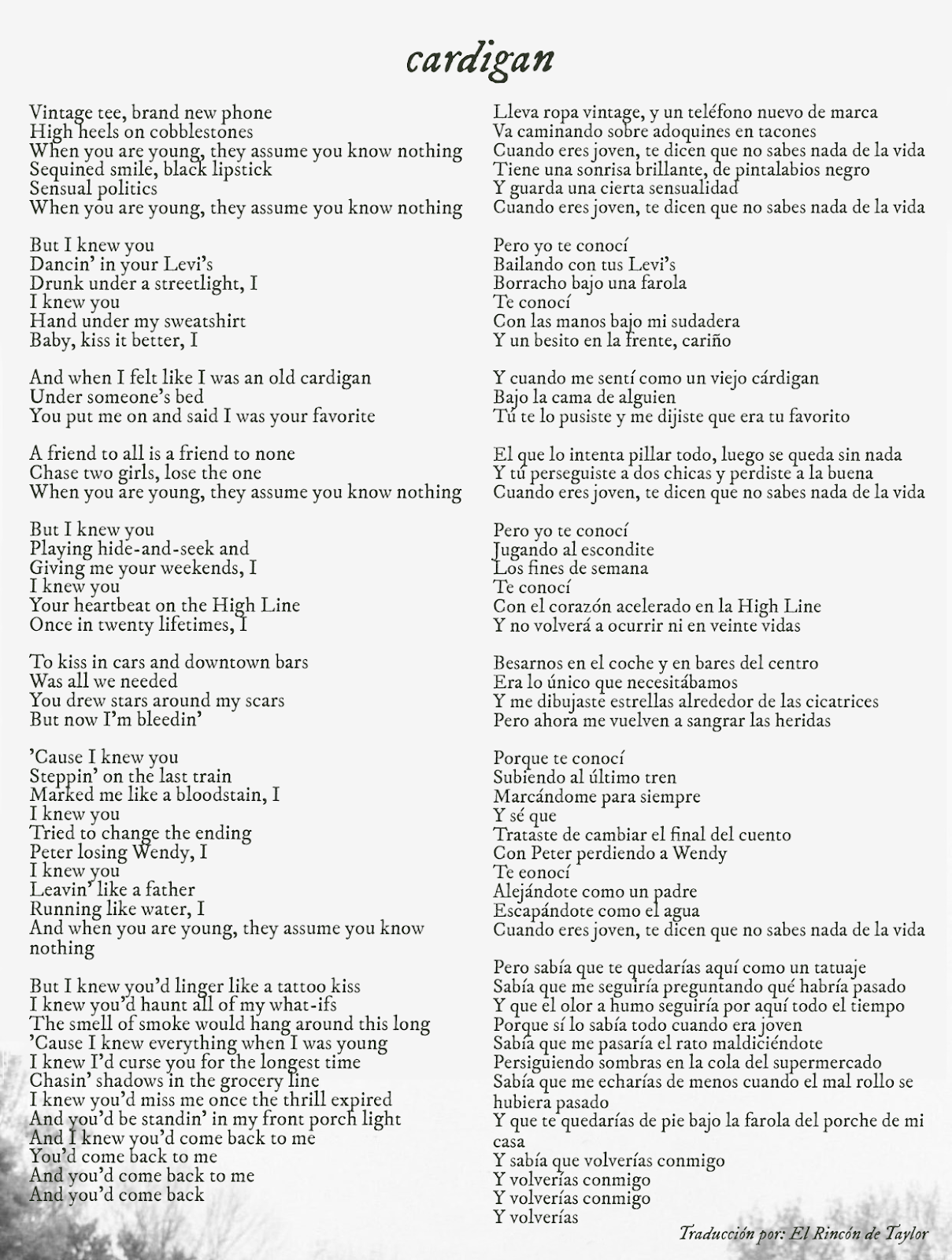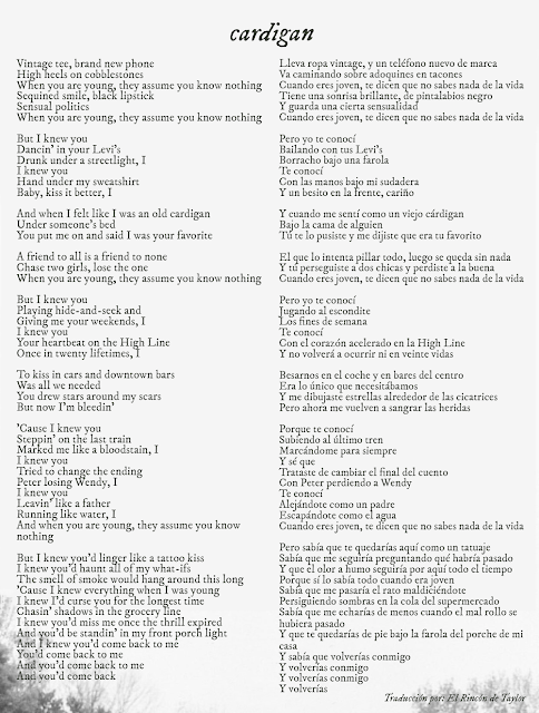 - Curiosidad: Taylor envió la demo de voz de este tema a Aaron el 27 de abril de 2020, el mismo día que subió a su Instagram la foto del "Not a lot going on at the moment".