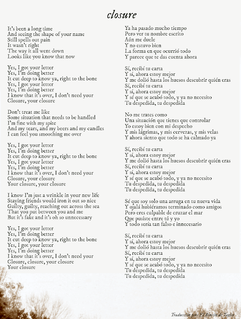 - Historia: Trata de la resolución final de una pareja que ha acabado definitivamente. Algunas teorías por ahí dicen que, en realidad, habla de la relación, o más bien de la no-relación que ha quedado, entre Taylor y Scott Borchetta, y la persona a la que se refiere a lo largo de todo el tema sería él mismo.